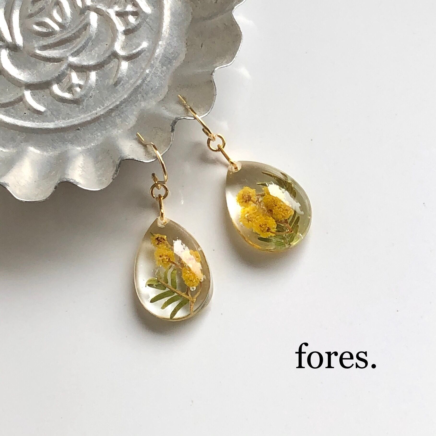 ミモザを使ったfores.のフラワーアクセサリー