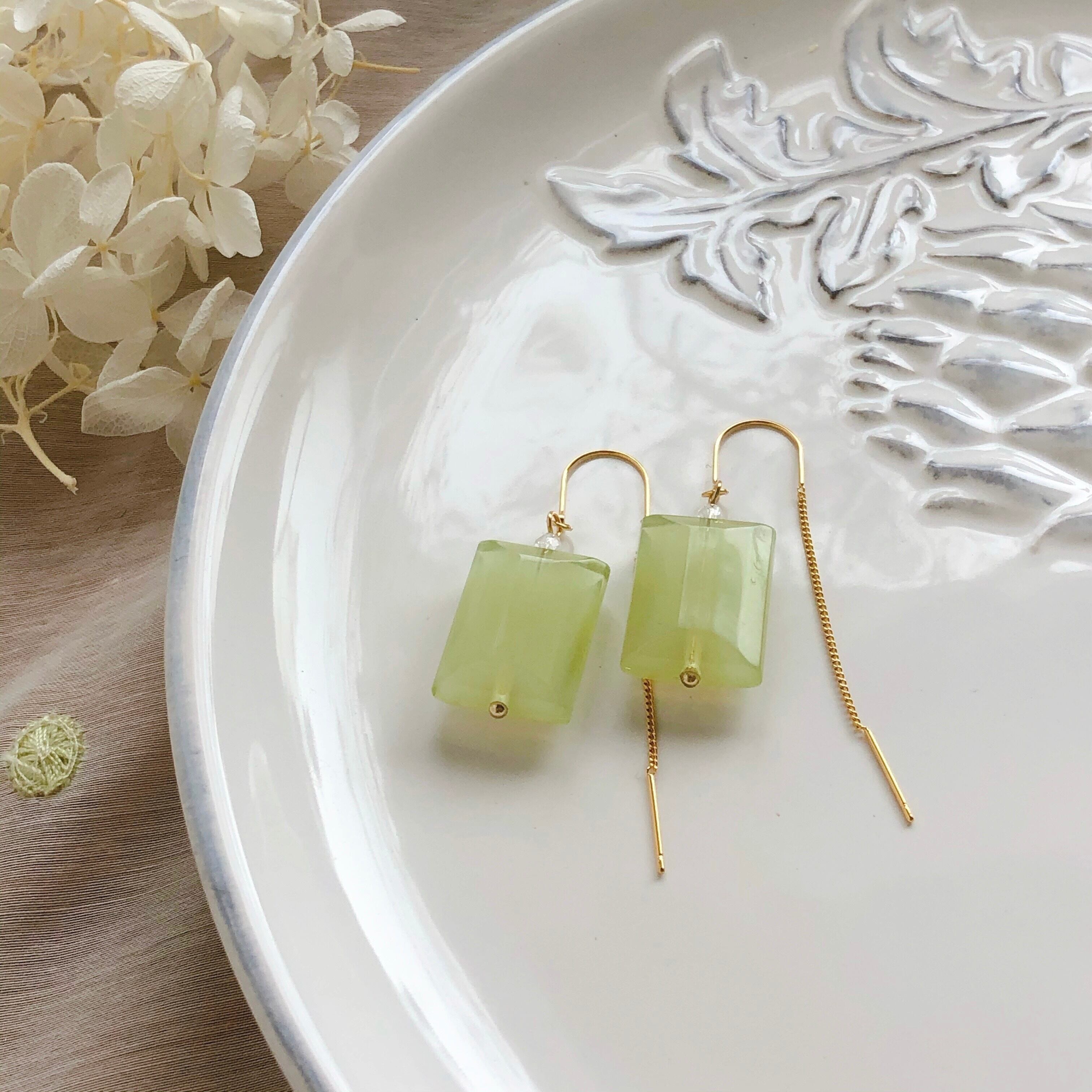お写真はK16gpチェーンピアス仕様のものです。その他の金具仕様をご注文の場合は、お届けまでにお時間いただく事もございます。