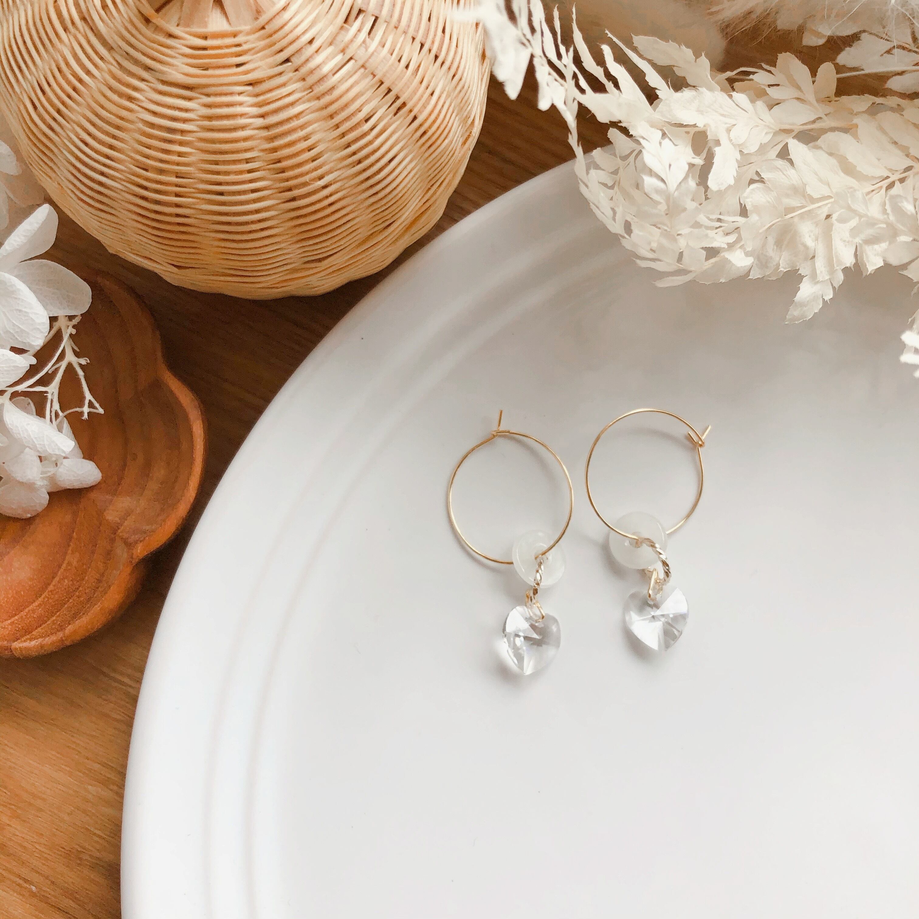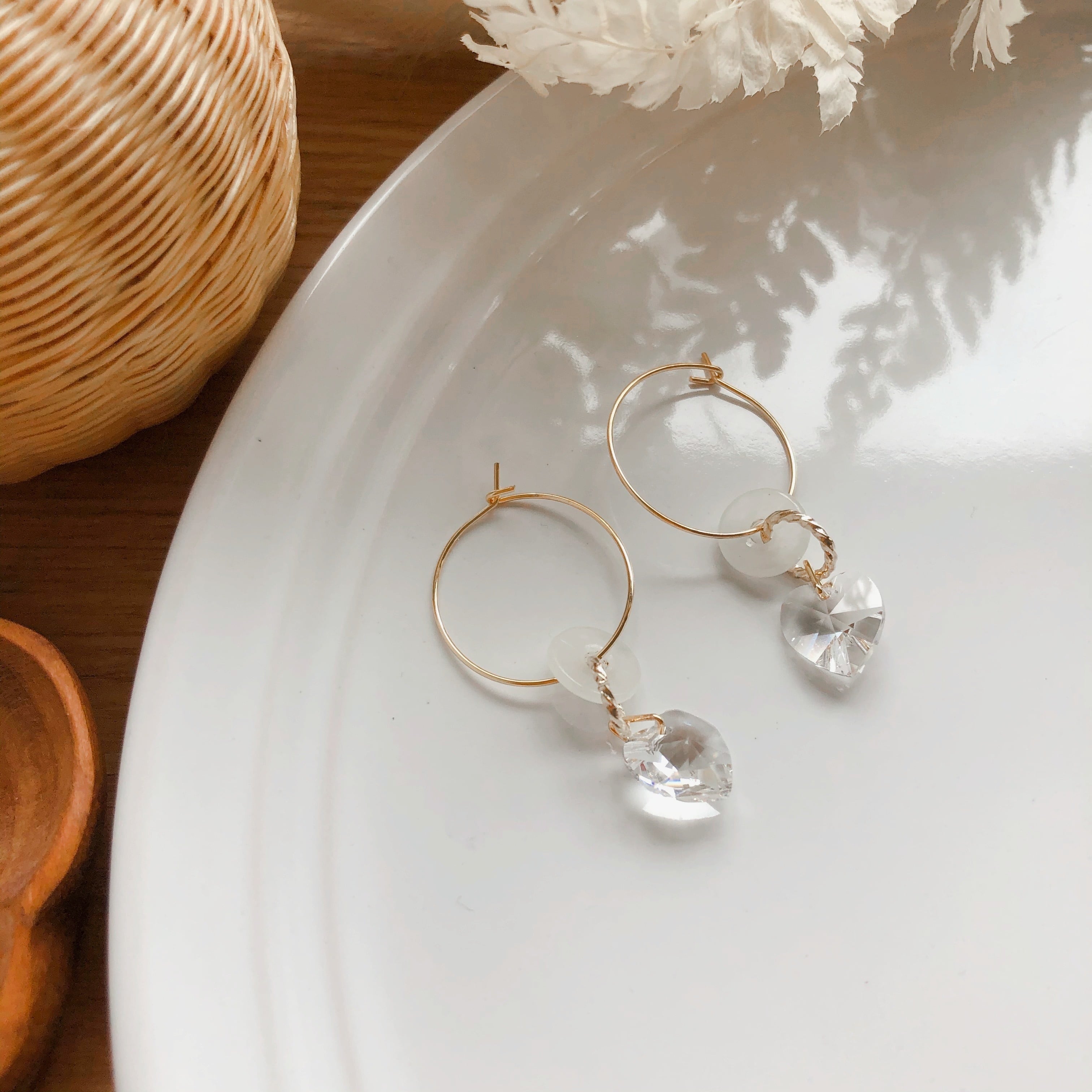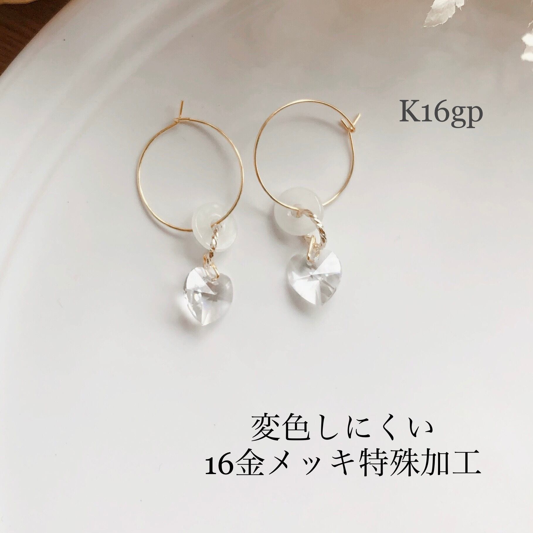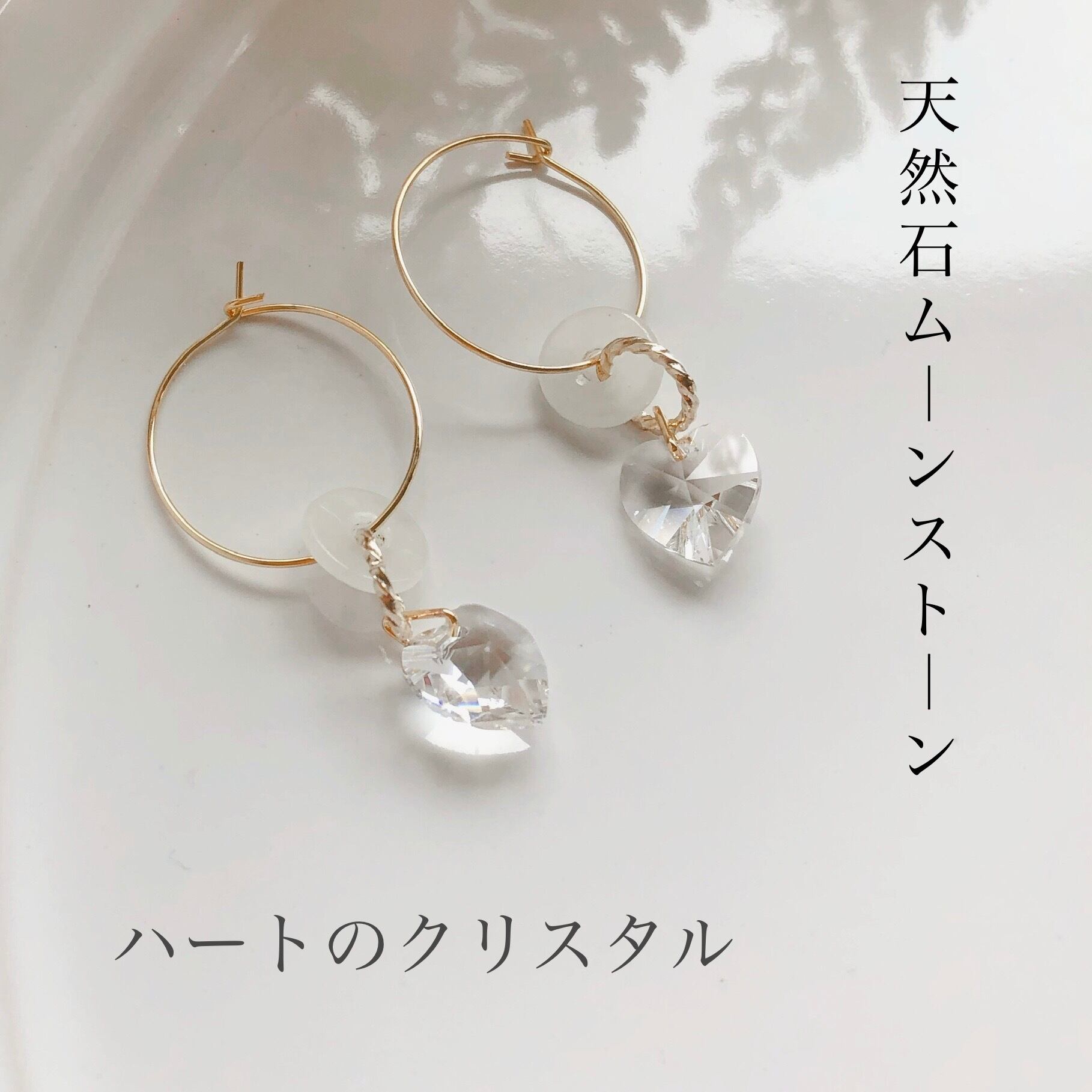 天然石ムーンストーン✴︎クリスタルハート K16gpフープピアス