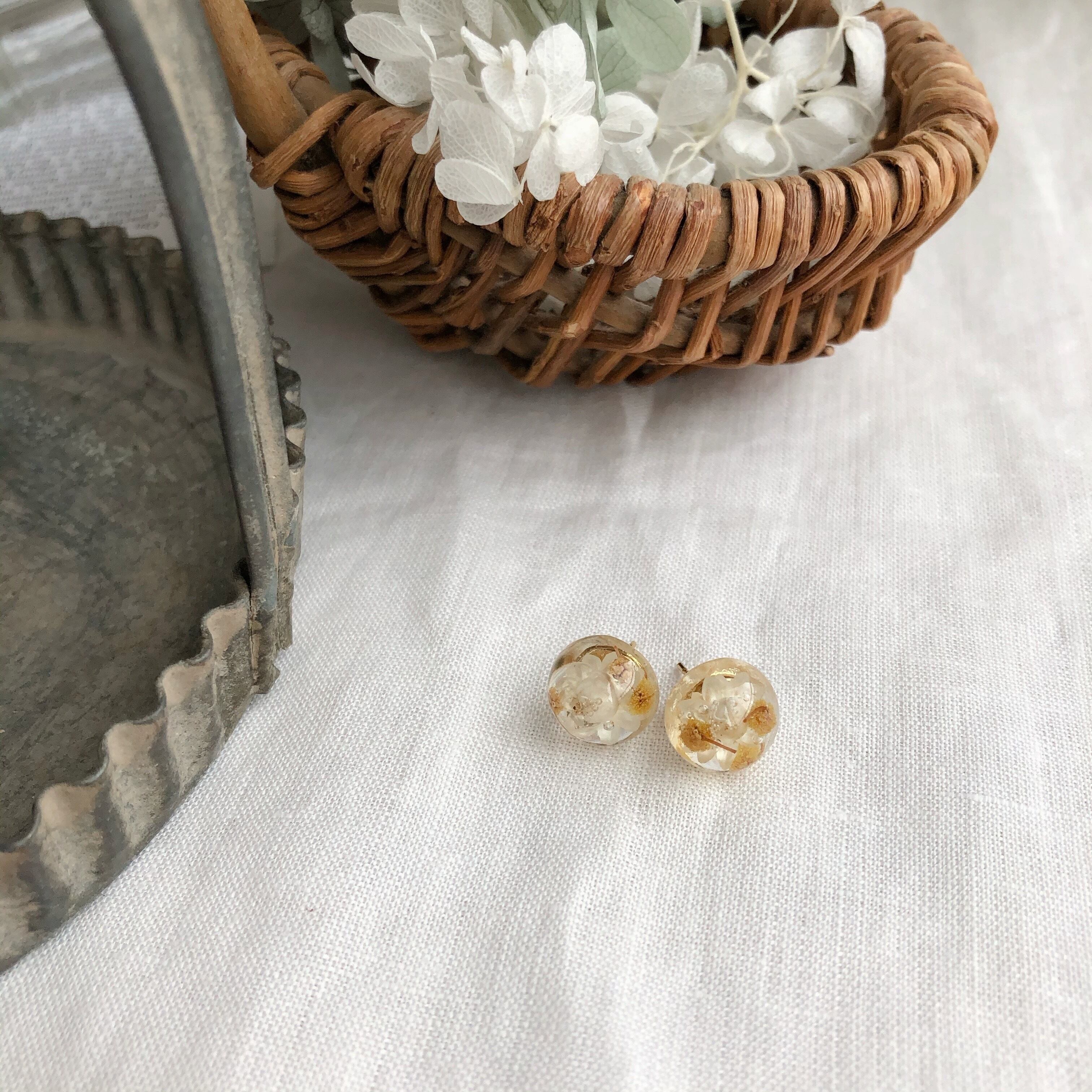 まあるいお花のレジンピアス